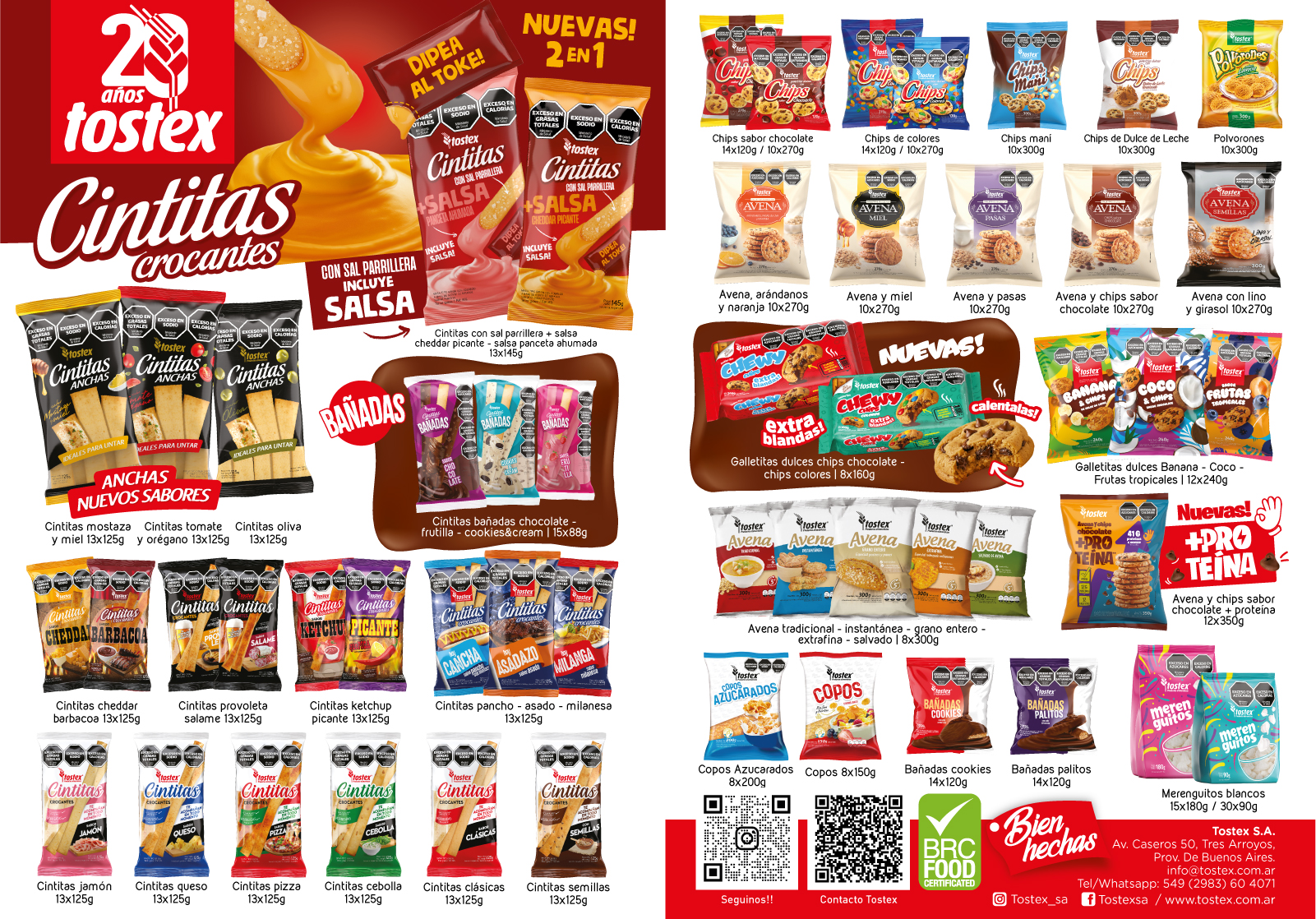 INGREDIENTES: Harina de trigo enriquecida según Ley 25630 (harina, hierro 30 mg/kg, ácido fólico 2,2 mg/kg, vitamina B1 6,3 mg/kg, vitamina B2 1,3 mg/kg, niacina 13,0 mg/kg); aceite alto oleico; sal; azúcar; ARO: barbacoa; EMU: INS 322; AC REG: INS 500 ii; FLO: E223.