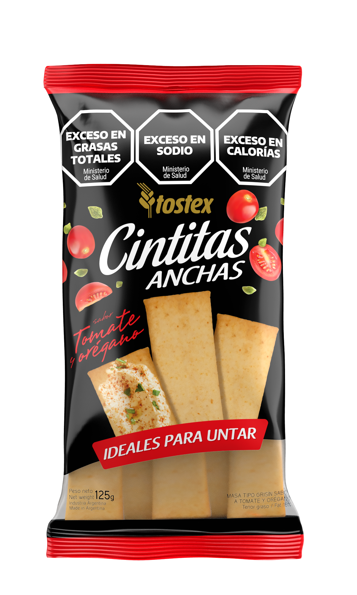 INGREDIENTES: Harina de trigo enriquecida según Ley 25630 (harina, hierro 30 mg/kg, ácido fólico 2,2 mg/kg, vitamina B1 6,3 mg/kg, vitamina B2 1,3 mg/kg, niacina 13,0 mg/kg); aceite alto oleico; sal; orégano; azúcar; tomate en polvo; Aromatizante artificial sabor pizza; EMU: INS 322; ACREG: 500 ii; FLO: INS 223.